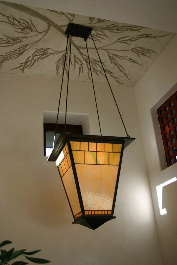 I have been making light fixtures for over 25 years. As you know, I started my business as a wood carver and wood worker over 40 years ago. But about 25 years ago, I had made a carved front door for a client in La Jolla. After it was installed, the client asked me if I knew where she could buy some light fixtures to compliment her entryway. I didn't have any idea where she could purchase any light fixtures, so I told her I could make her some. I had already been working in copper, iron, and leaded glass, including bending glass, so why not light fixtures!