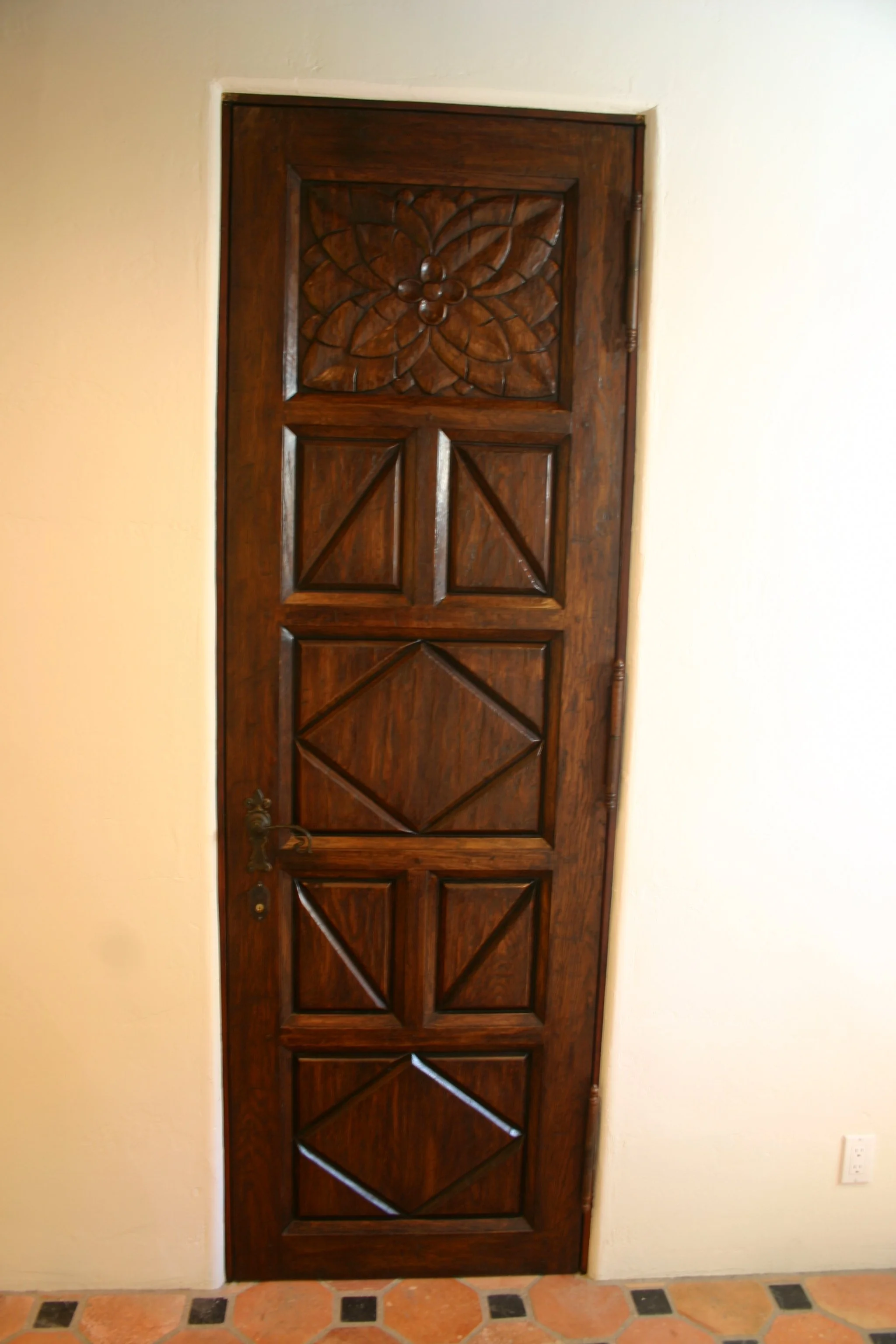 There is a strong Spanish/Mexican influence on Southern California architecture, being so close to the Mexican border. A large part of my design-and-build work is comprised of Spanish-styled doors, furniture and cabinetry. Different styles come in and out of fashion, lasting several years before a new style takes over, but the historic Spanish style in Southern California is strong enough to stand the test of time. This is a design style that is not going to fade out. Pictured in this blog are some of the entryways and interior doors I have made in the Spanish style, doors that blend beautifully with the Mexican and Spanish architecture so well there would be no reason to change simply because the style was supposedly not in vogue anymore. Along with this I have found that good-quality workmanship never goes out of style either. When I build an entryway for a home it is made to last for generations, and it is meant to be loved for generations.