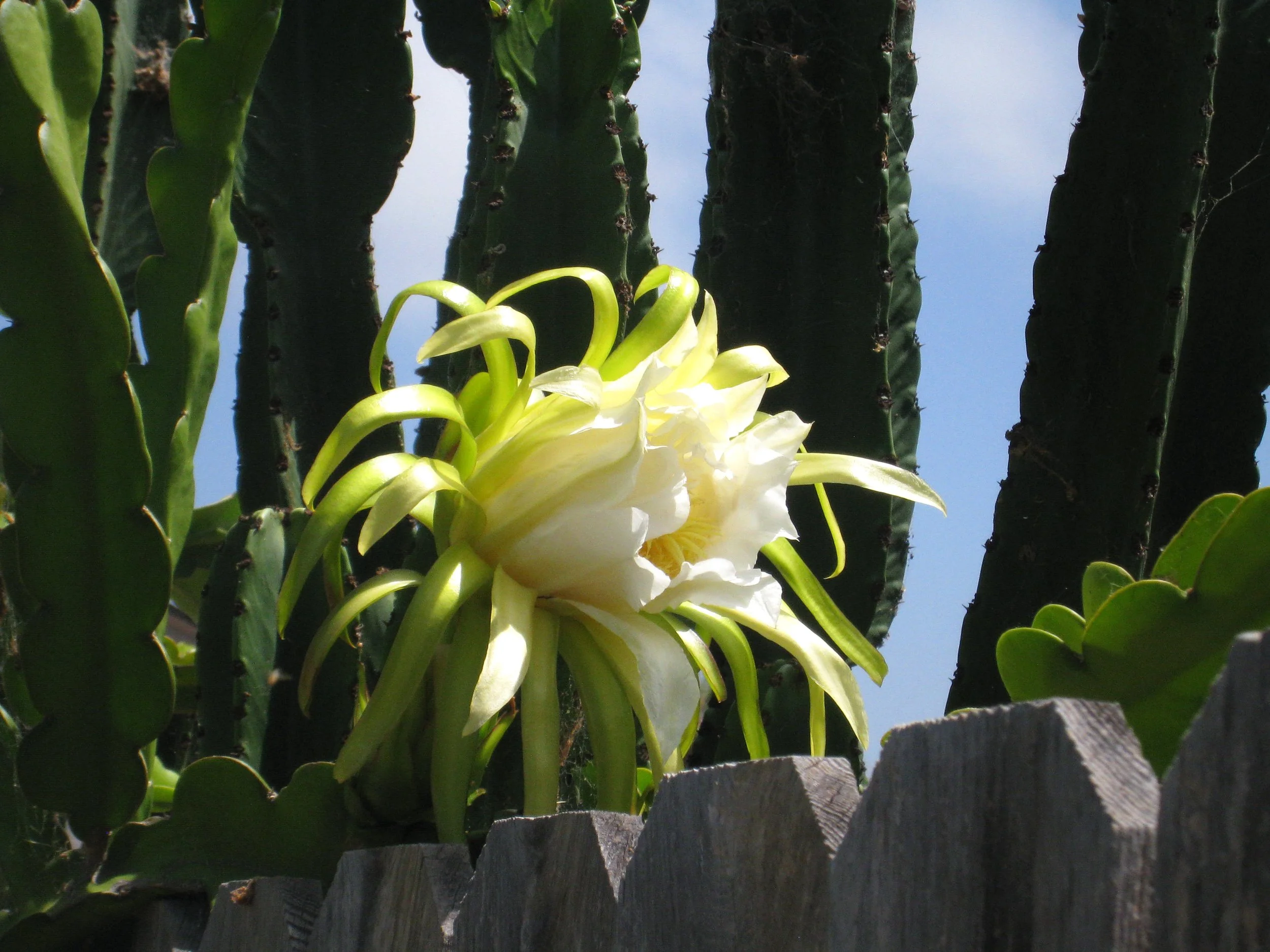 Above: A dragon fruit flower. This will turn into the fruit you see in the picture below.